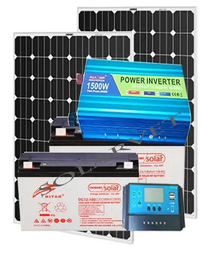Power your home or small business with the Ritah 1500W full kit 2pcs 100AH. It includes solar panels, a pure sine wave inverter, and two 100AH deep-cycle batteries. This setup delivers dependable power for off-grid or backup needs.